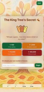 A cozy fall guessing game. Listen to wind and leaves, use smart hints, and find the King Tree’s Secret Number. Quick rounds, gentle vibes, fun for kids & adults.