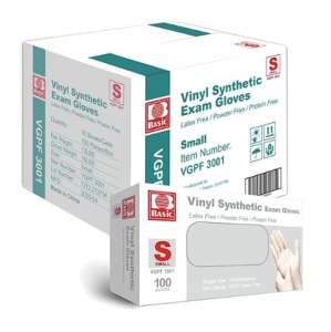 Basic Medical Clear Vinyl Exam Gloves - Latex-Free & Powder-Free - VGPF-3001(Case of 1,000), Small